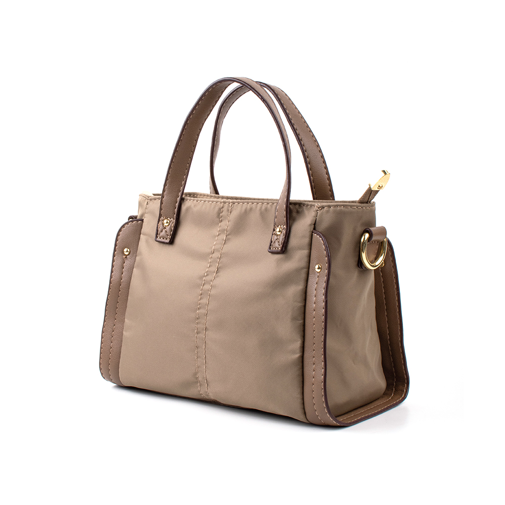 Elevate your daily look with this Nylon Small Tote Bag from LARRIE. Made with durable material, it features double handles, a detachable shoulder strap, and spacious compartments with magnetic closure. Perfect for casual outings, the office, or weekend use.
