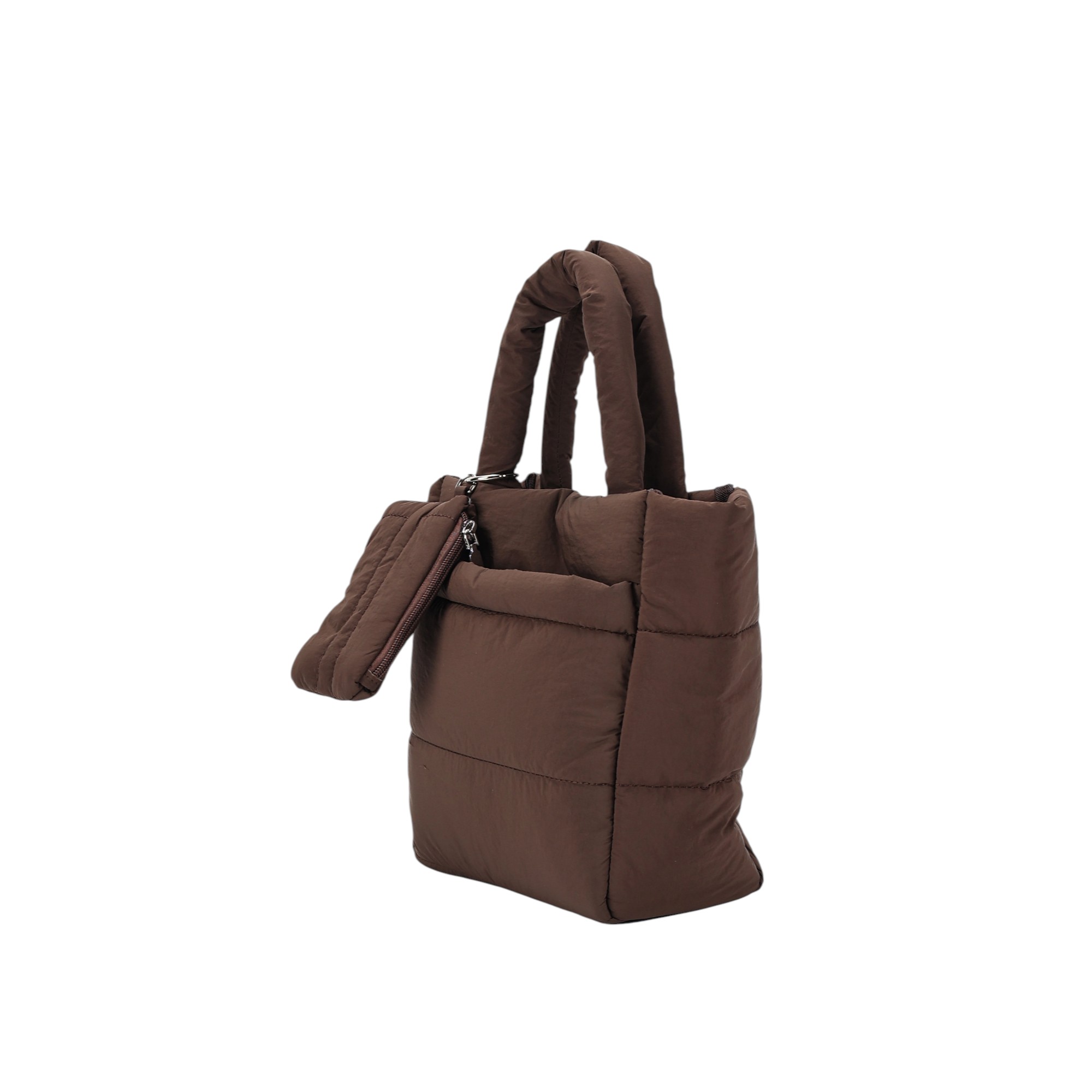Make a bold fashion statement with the Larrie Beg — where utility meets glossy glam. This tote features a smooth, high-sheen padded body, with a polished twist, bringing cosy puff aesthetics. The detachable shoulder strap and padded top handles offer versatile carrying options, while the included mini zip pouch adds bonus style and convenience.