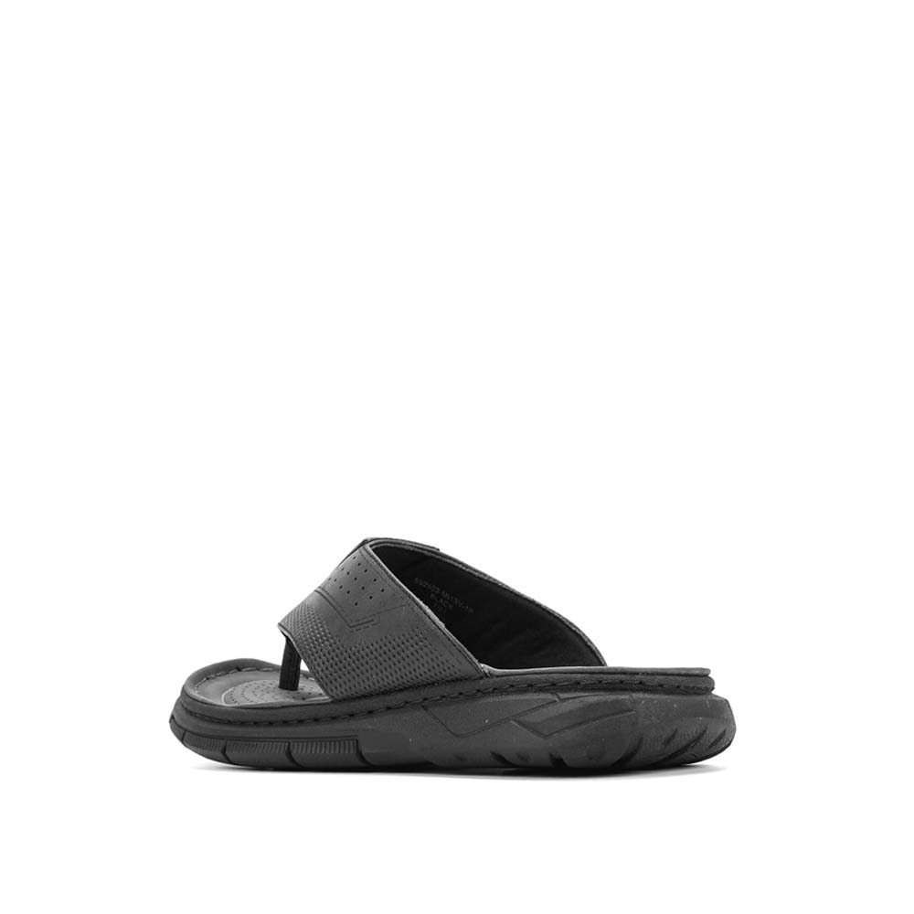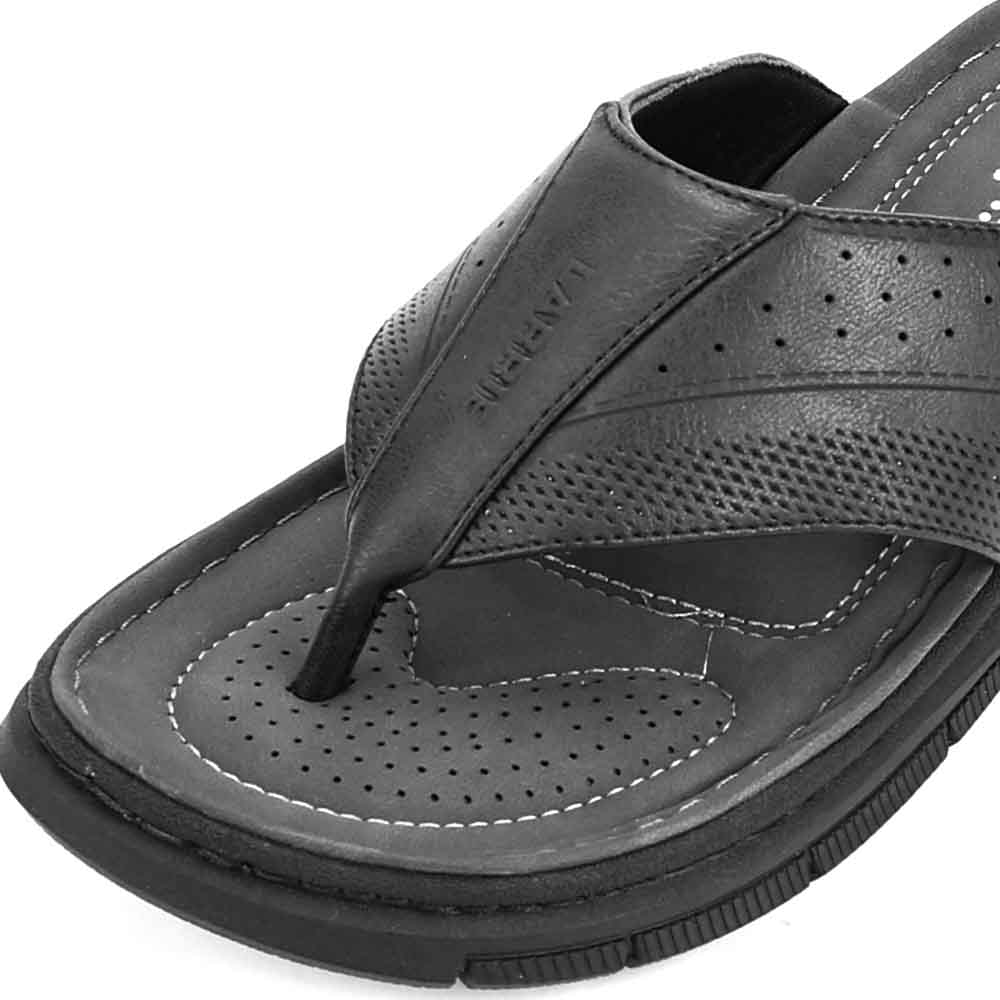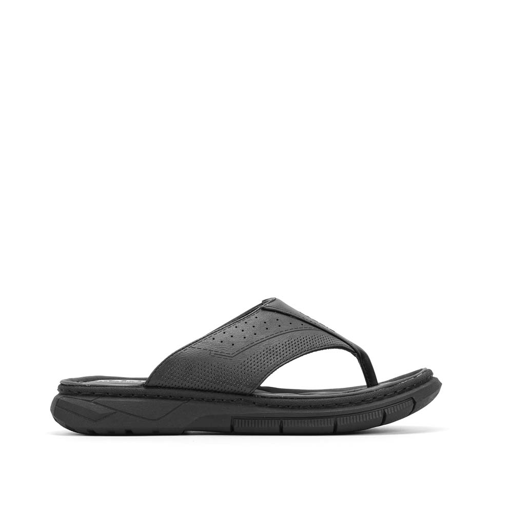 Step into effortless style and comfort with these sleek black sandals, designed for those who value both durability and ease. Crafted from high-quality leather, these sandals feature a perforated upper that enhances breathability, making them perfect for warm-weather wear. The cushioned footbed provides maximum support, while the sturdy PVC outsole ensures grip and stability on various surfaces. With a classic thong design and a modern touch, these sandals seamlessly blend function and fashion. Whether you’re headed to the beach, a casual outing, or just lounging around, these sandals offer a versatile, all-day comfort experience. A perfect choice for those who prioritize comfort without compromising on style.