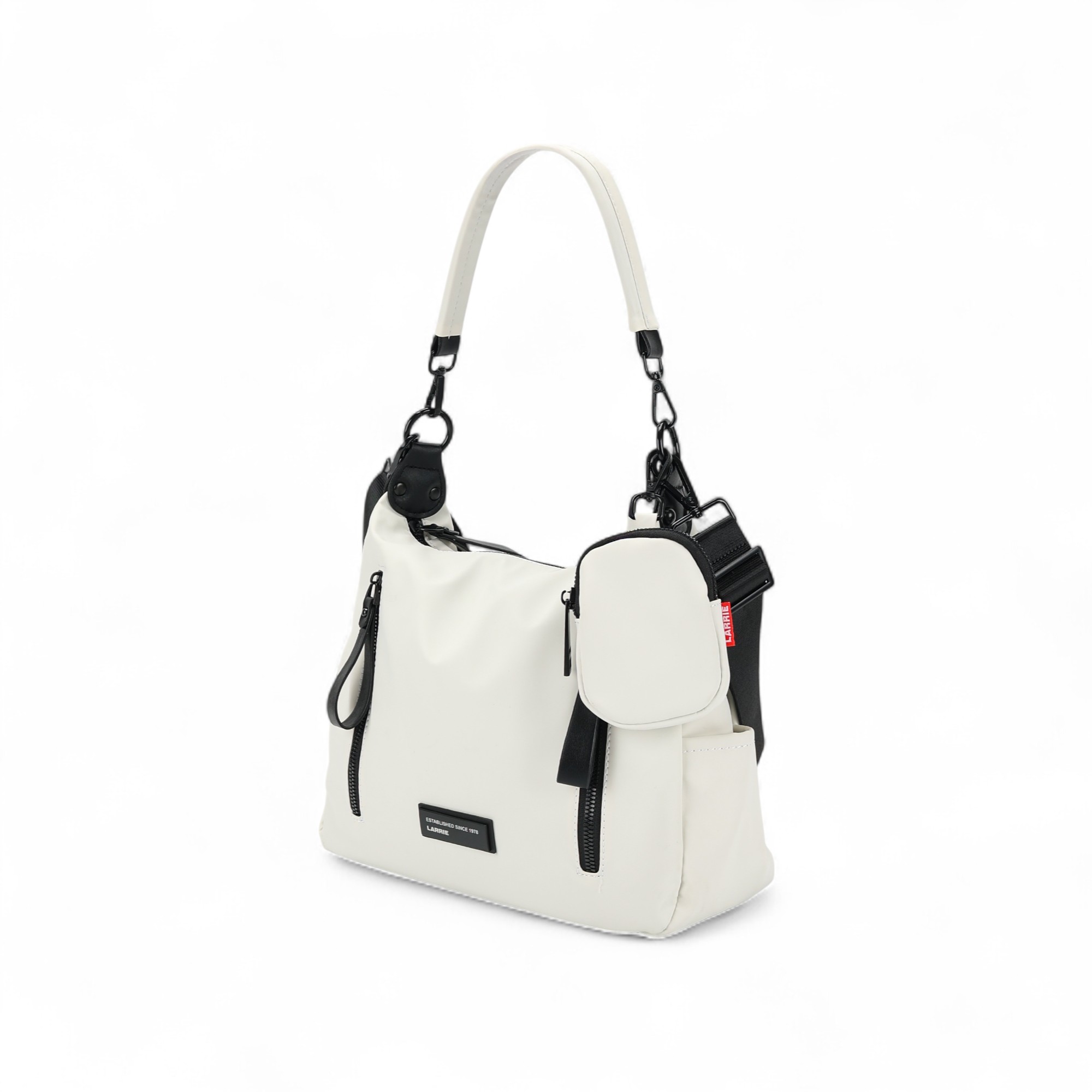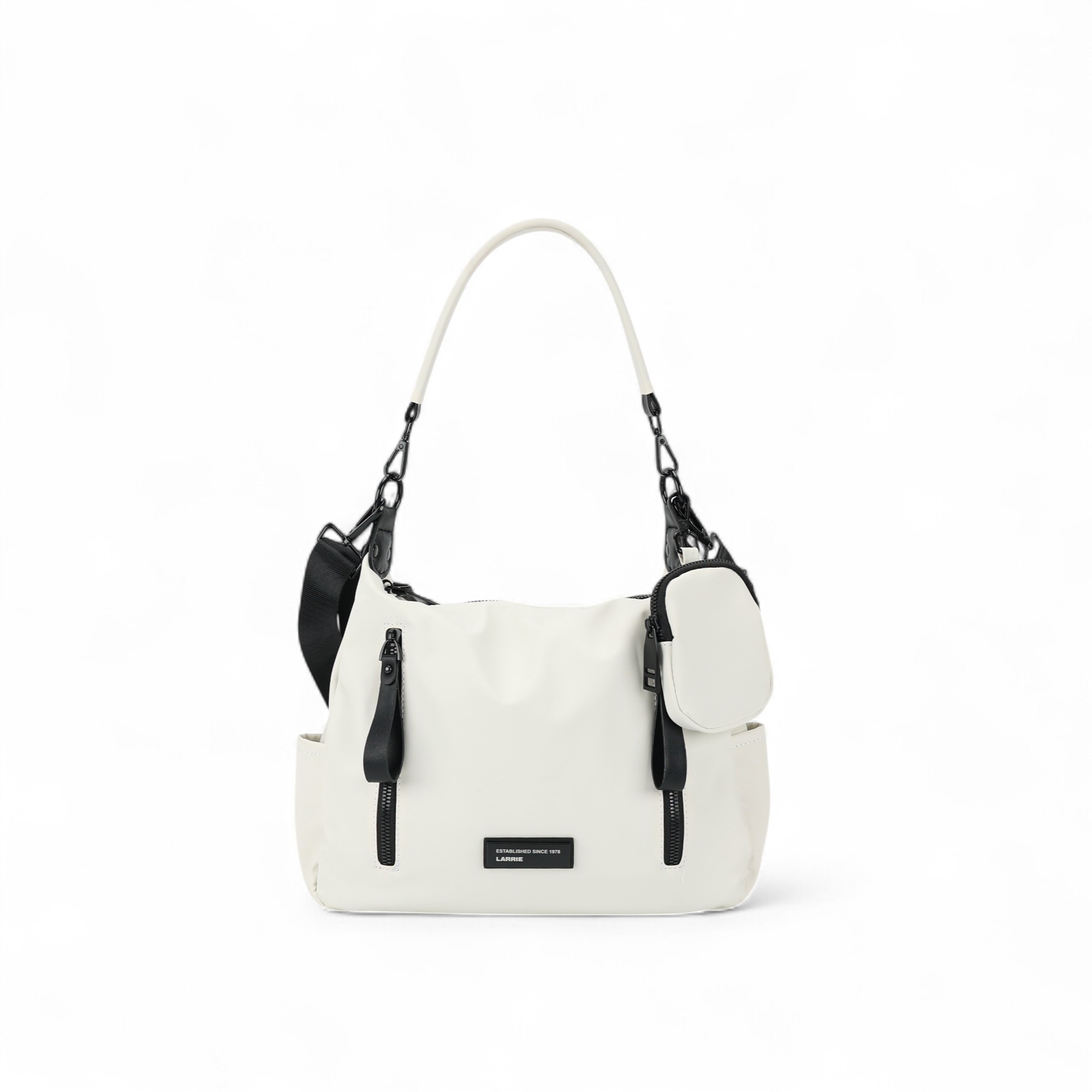 Smart, sleek, and unexpectedly versatile, the Larrie Beg blends structure with softness in a convertible shoulder bag for modern movement. With dual vertical zip accents, a detachable mini pouch, and interchangeable straps, it effortlessly transitions between casual, work, and weekend wear. Its water-resistant finish and compact silhouette deliver both style and utility, making it your go-to for refined everyday carry.